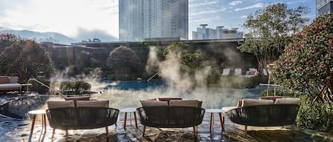 룸은 19층까지 있는 것 같고, 20층은 조식 레스토랑이고, 21층은 루프탑 라운지와 수영장이 있다고 합니다만, 아직 이용은 할 수 없는 것 같았습니다.그리고 사우나 홍보 배너가 있어서 문의하니 5월 중순쯤부터 이용 가능하다고 안내해주시고, 전날 조식 신청하시면 할인도 가능하더라구요! 저희는 늦잠을 잘 예정이라 따로 예약은 하지 않았네요 🙂